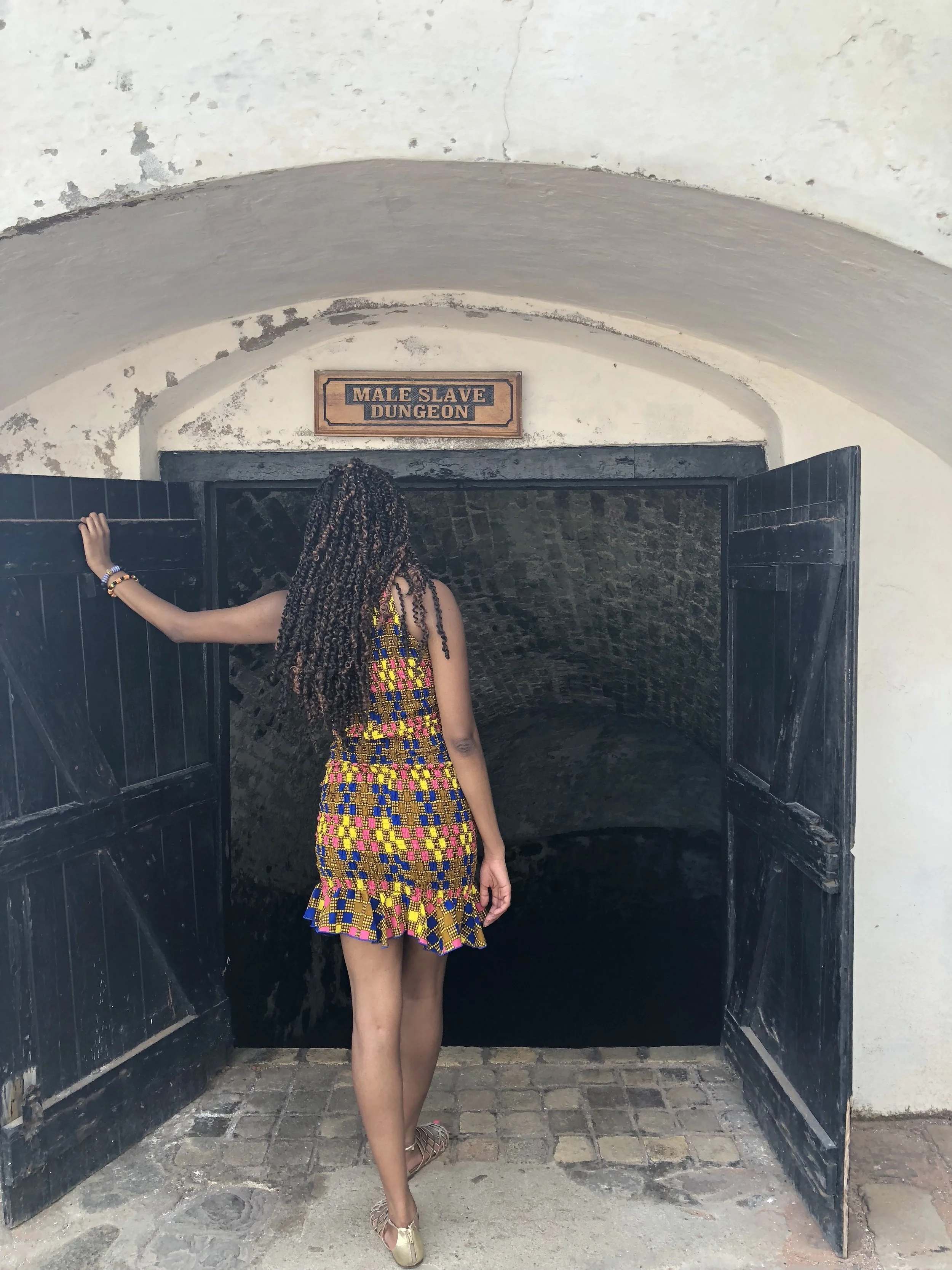 I started the morning off headed to the Ashanti Kingdom Palace to learn about the past Kings and Queens of the Ashanti region. From there, I left to head to Cape Coast. During the 4 hour ride I was in awe of the lush and beautiful scenery. Right before entering into Cape Coast, I stopped at the slave river where my ancestors took their last bath before entering into the market to be shipped off.